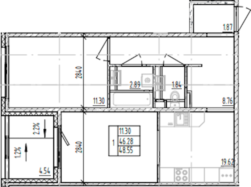 - Площадь48,55 м2