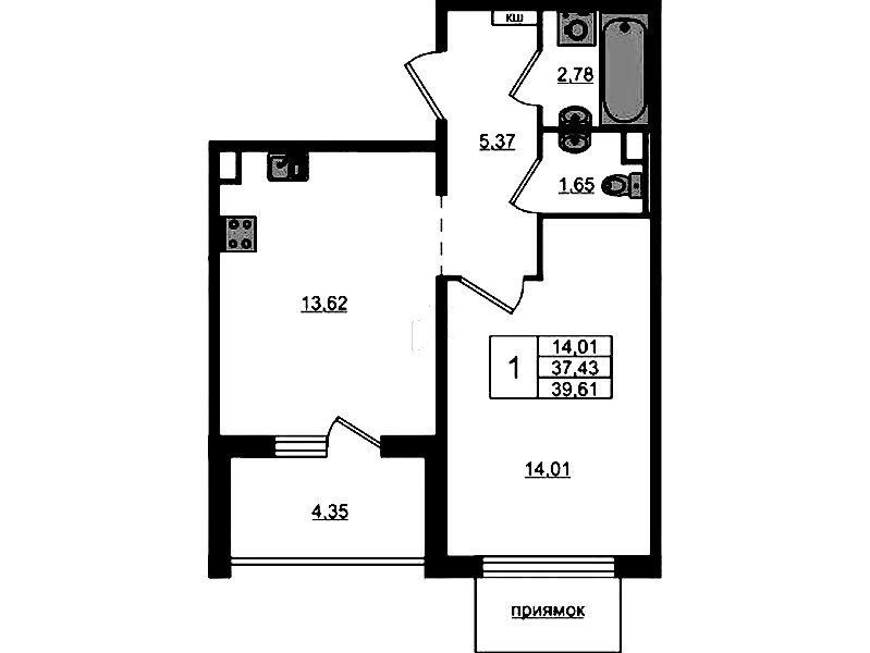 - Площадь39,61 м2