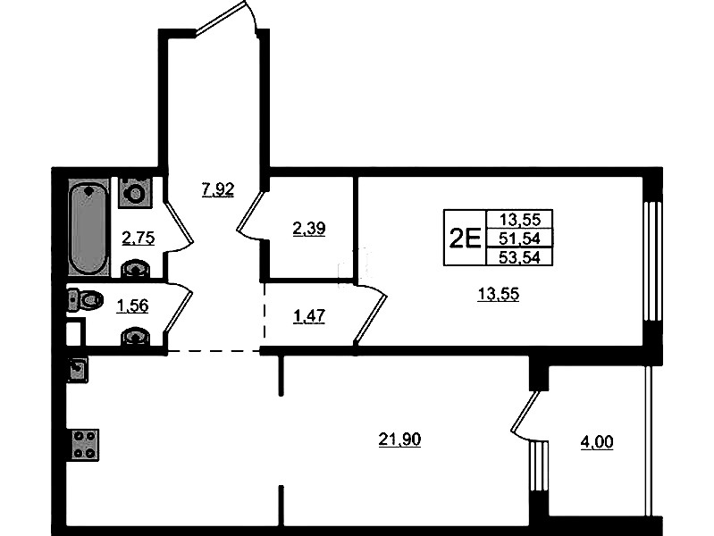 - Площадь53,54 м2
