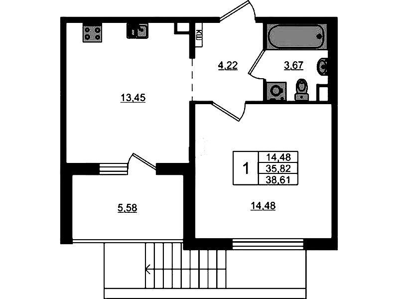 - Площадь38,61 м2