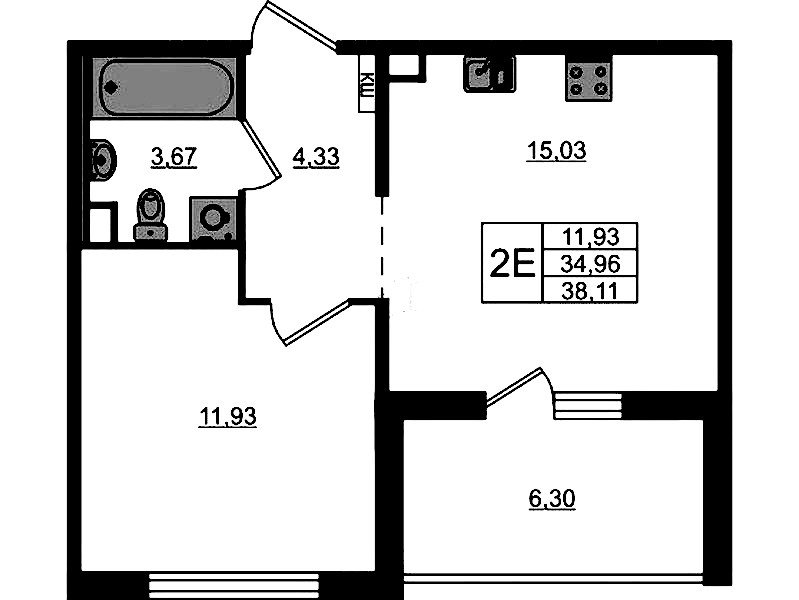 Однокомнатная квартира на 8-ом этаже 38,11 кв.м
