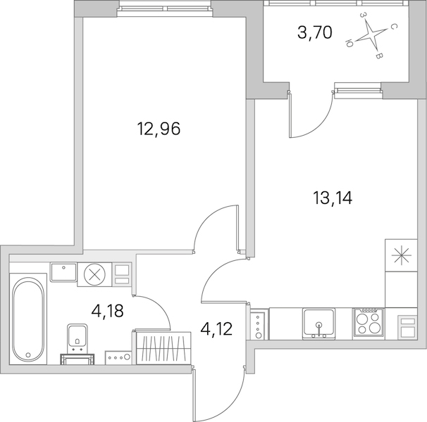 - Площадь кухни13,14 м2