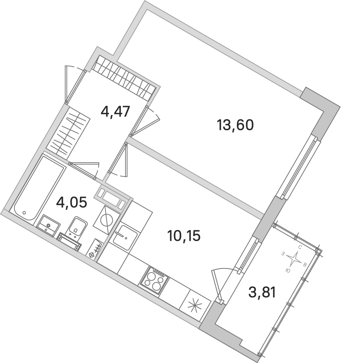 - Площадь кухни10,15 м2