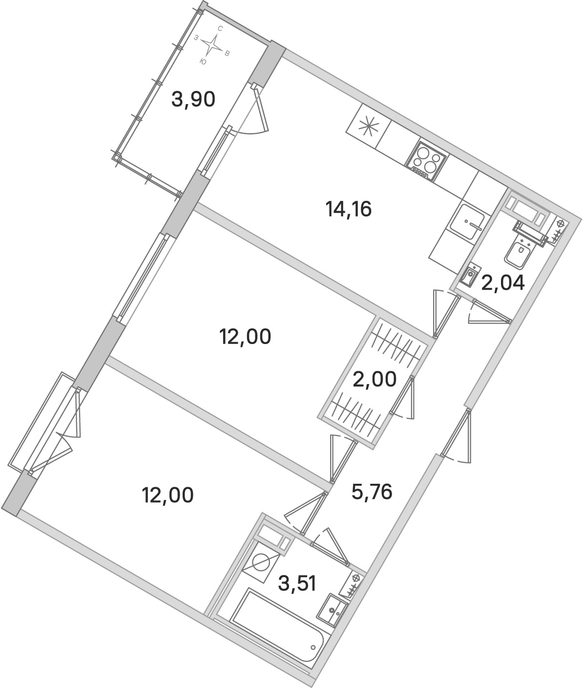 • Площадь кухни14,16 м2