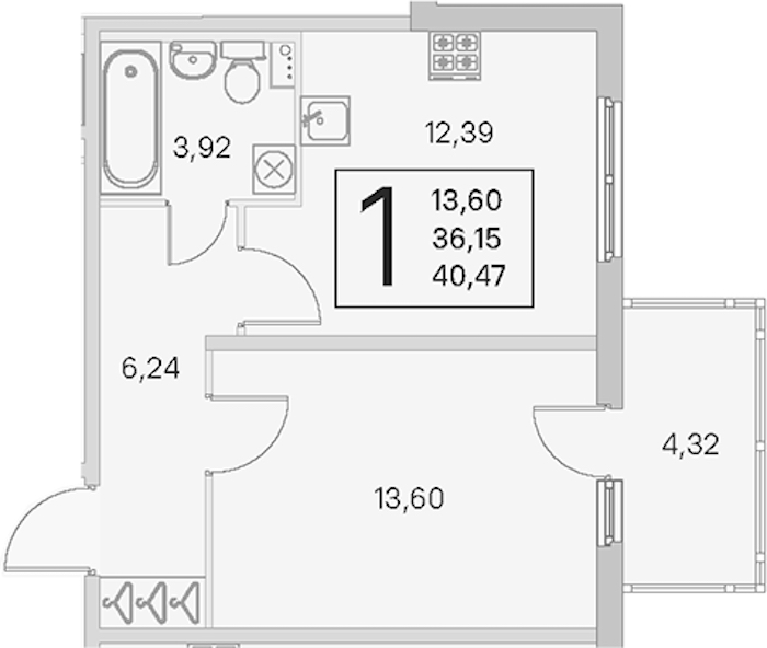 Однокомнатная квартира на 1-ом этаже 36,15 кв.м