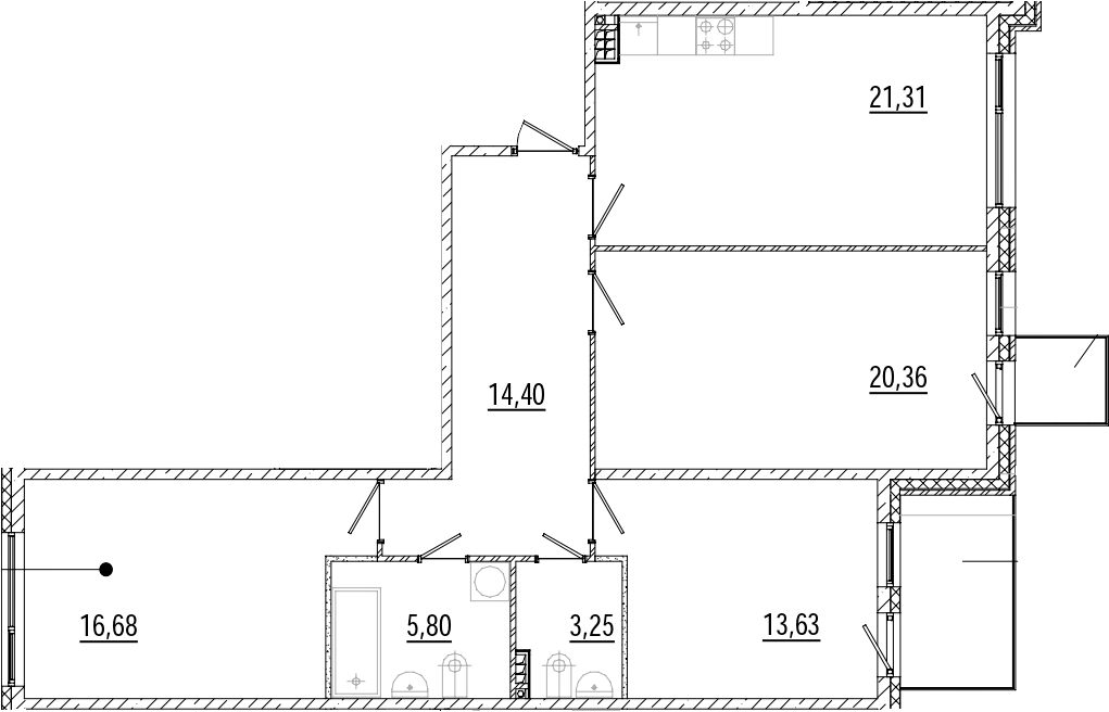 Трёхкомнатная квартира на 4-ом этаже 97,43 кв.м