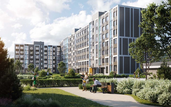 - Архитектура комплекса решена в современном стиле: разновысотные секции, гармоничное цветовое решение, большая площадь остекления.