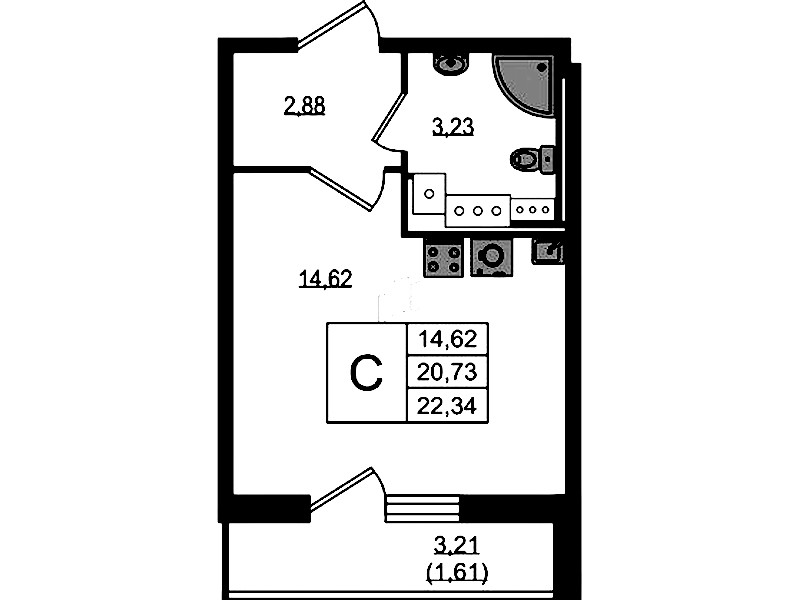 • Площадь22,34 м2