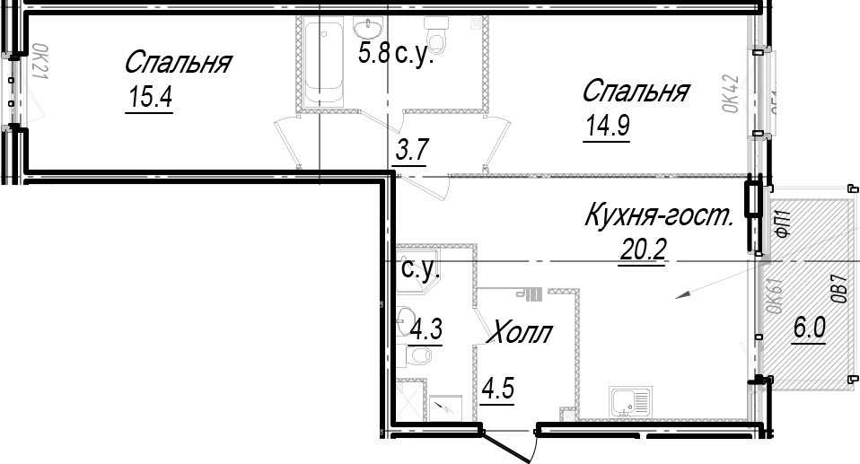 - Площадь кухни20,2 м2