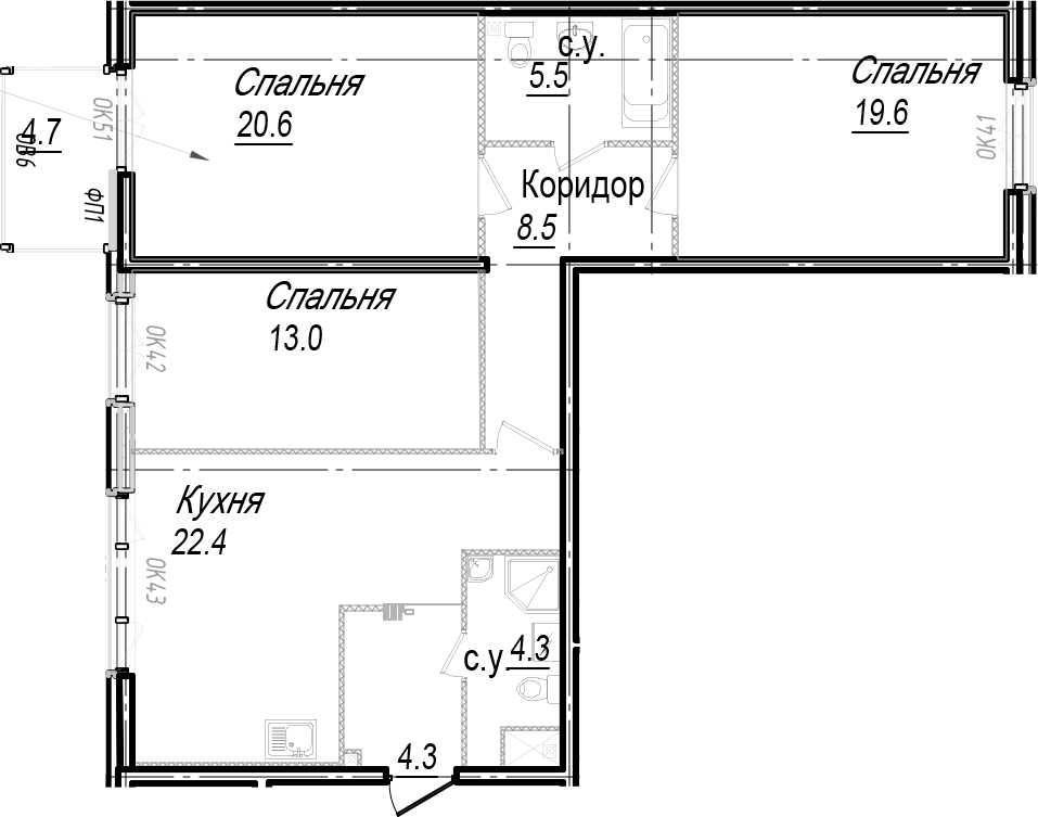 - Количество комнат3