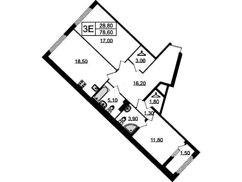 - Площадь78,6 м2