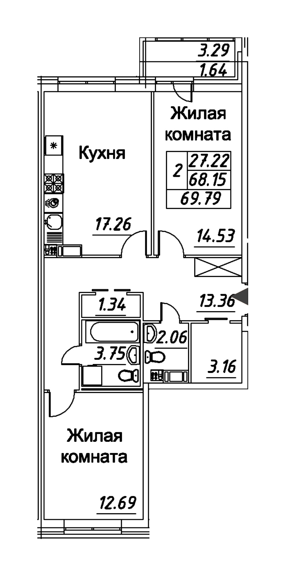 - Площадь69,79 м2