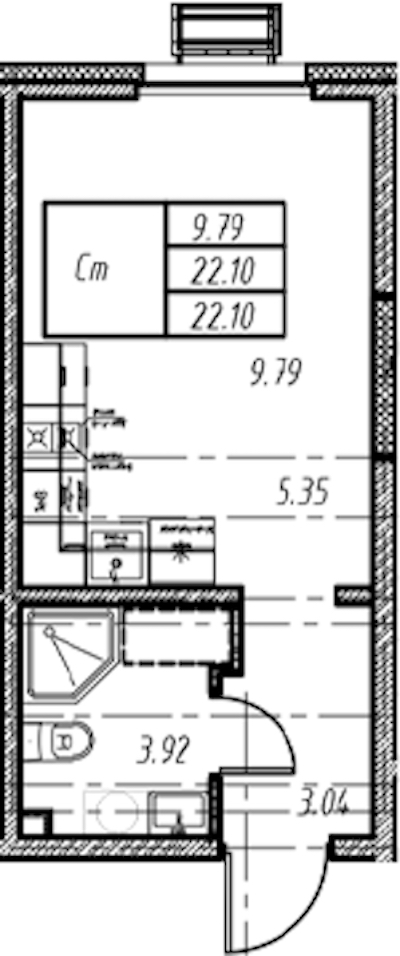 • Площадь22,1 м2
