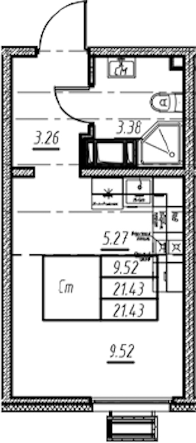 Квартира-студия на 5-ом этаже 21,43 кв.м