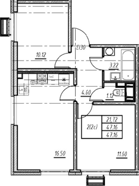 - Площадь47,16 м2