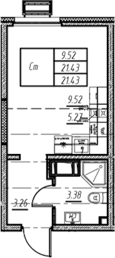 Квартира-студия на 4-ом этаже 21,43 кв.м