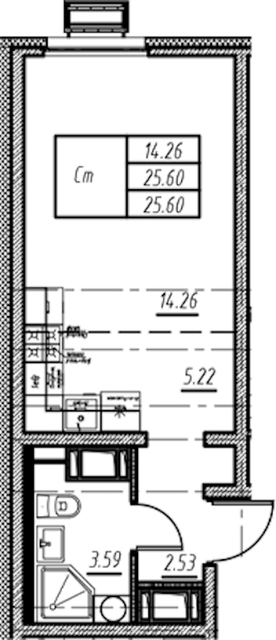 - Площадь25,6 м2
