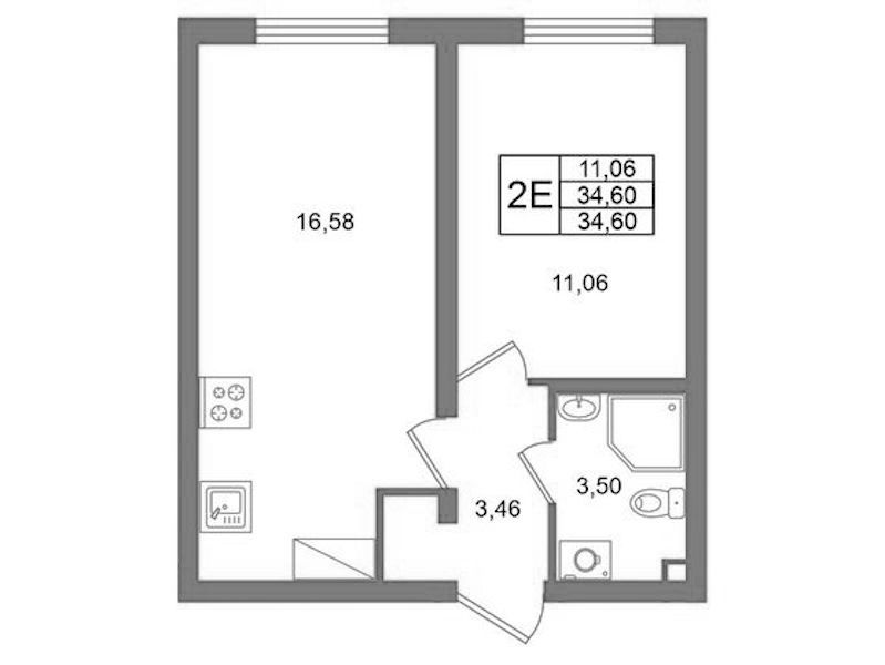 - Площадь34,6 м2
