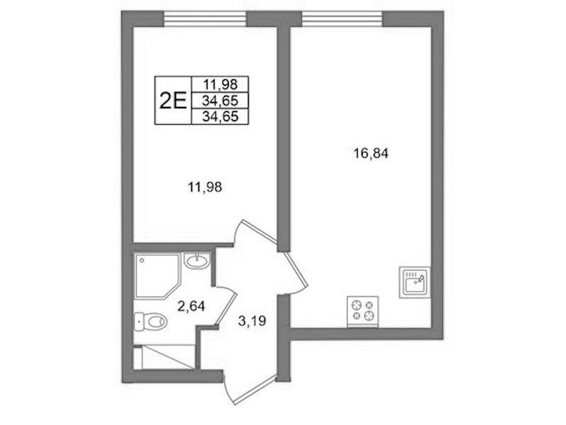 Однокомнатная квартира на 13-ом этаже 34,65 кв.м