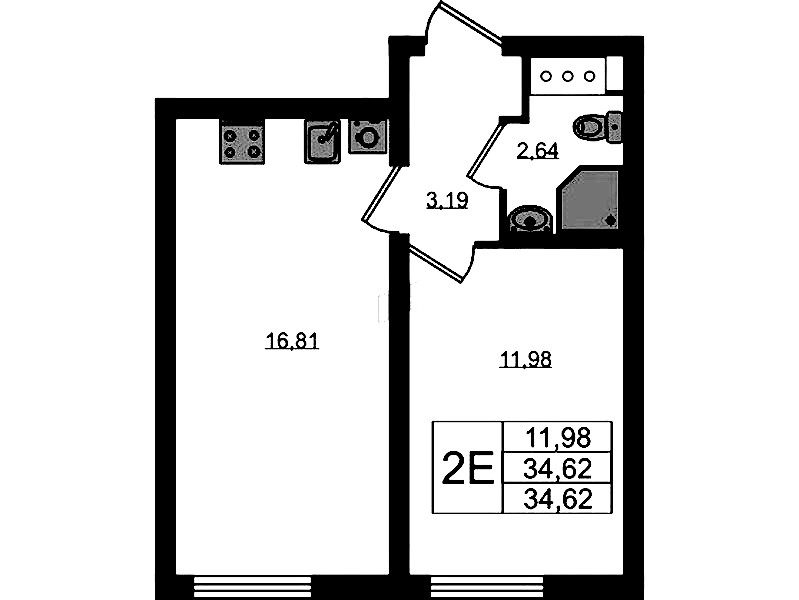 Однокомнатная квартира на 20-ом этаже 34,62 кв.м