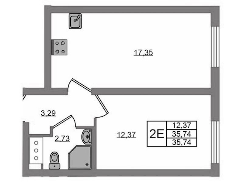 - Площадь35,74 м2