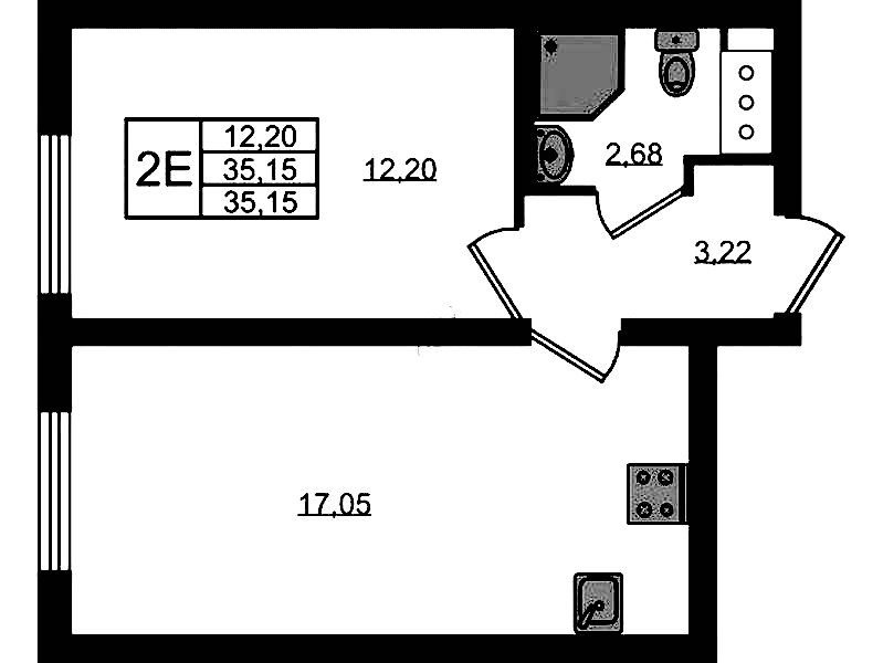 - Площадь35,15 м2