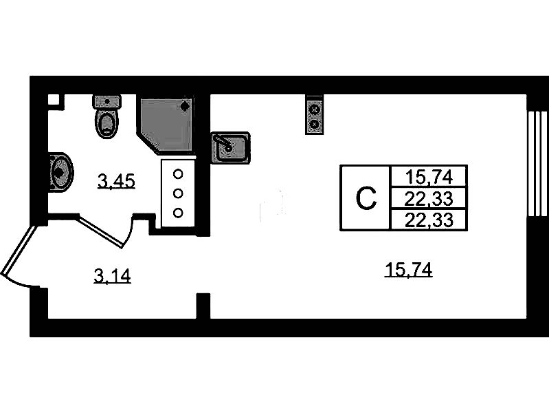 Квартира-студия на 5-ом этаже 22,33 кв.м