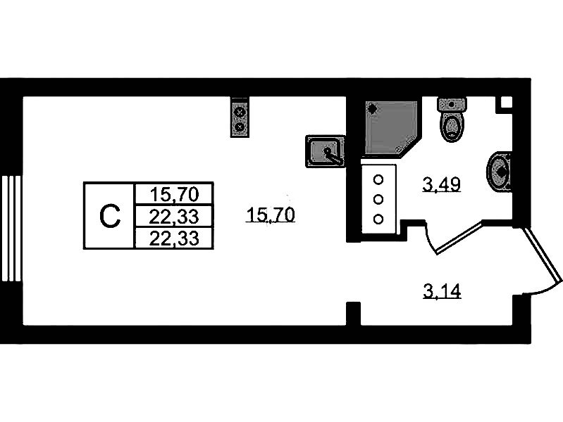 Квартира-студия на 5-ом этаже 22,33 кв.м
