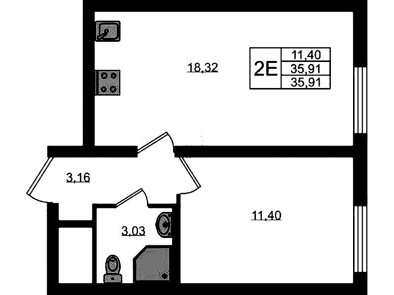 Однокомнатная квартира на 6-ом этаже 35,9 кв.м