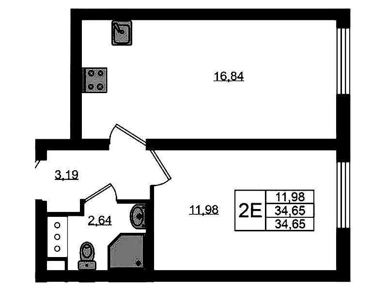 Однокомнатная квартира на 10-ом этаже 34,7 кв.м