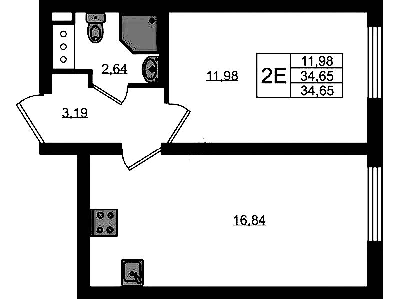 Однокомнатная квартира на 20-ом этаже 34,7 кв.м