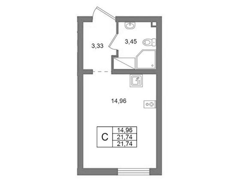 - Площадь21,74 м2