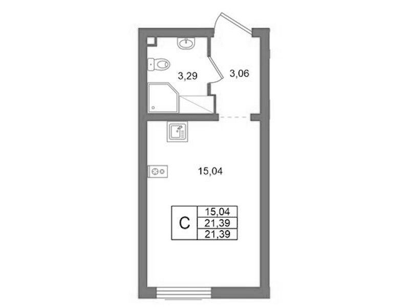 Квартира-студия на 8-ом этаже 21,39 кв.м