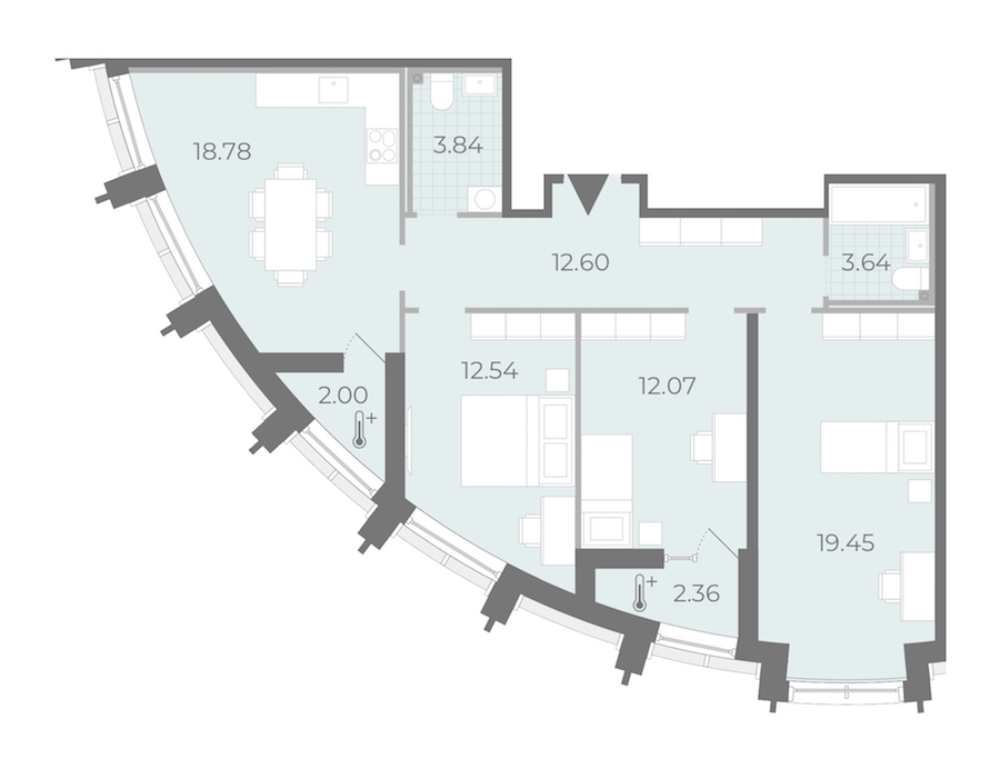 Трёхкомнатная квартира на 14-ом этаже 85,1 кв.м