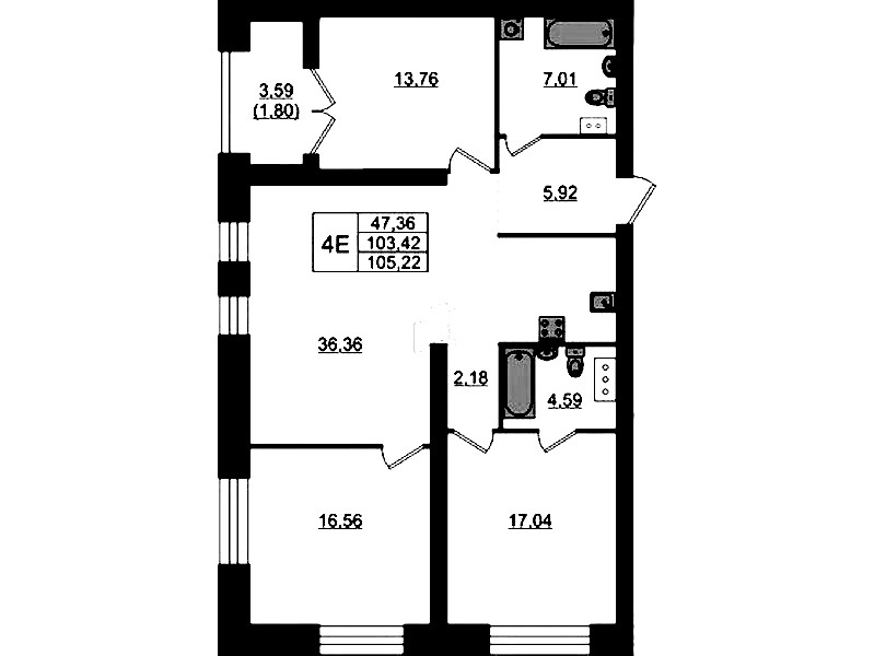 - Площадь105,22 м2