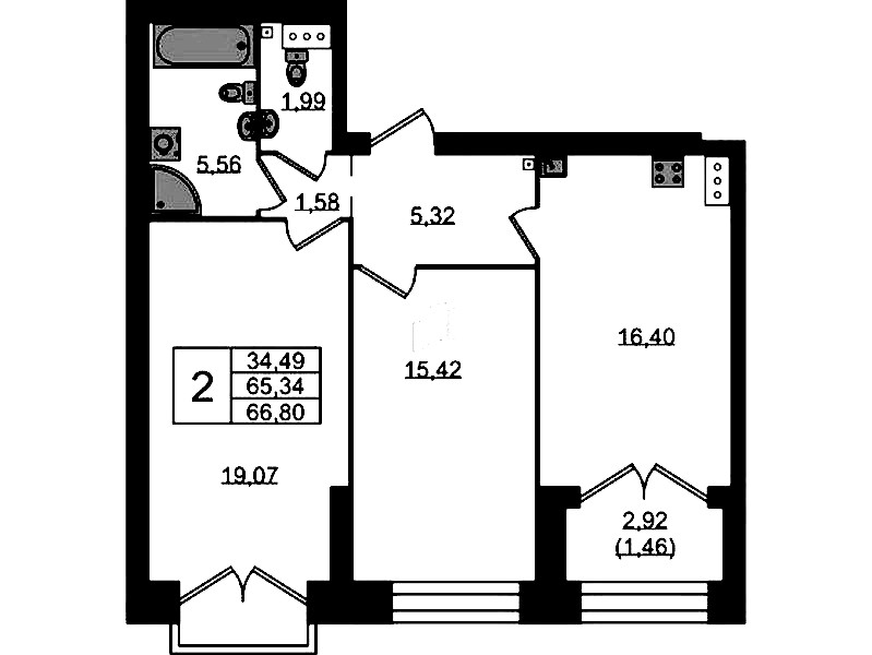 - Площадь66,8 м2