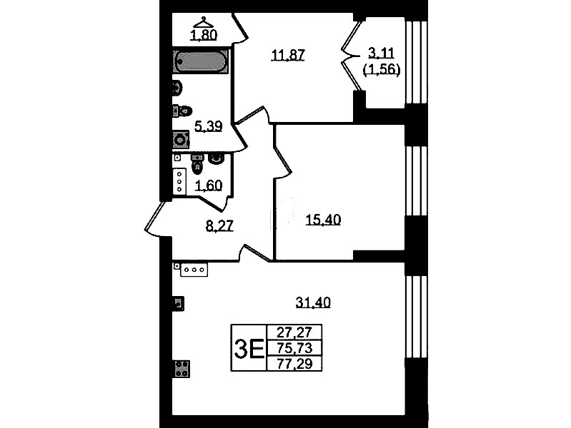 - Площадь77,29 м2