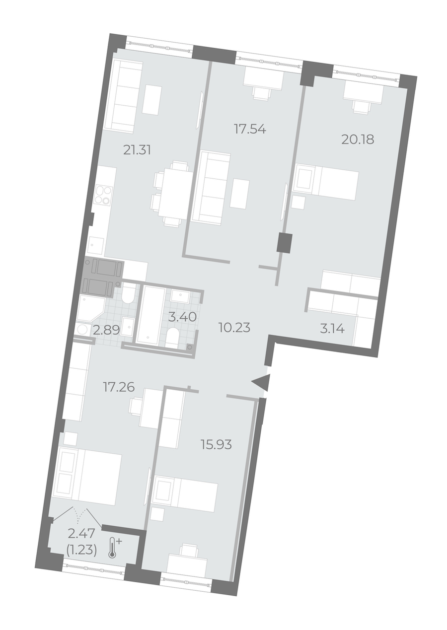 - Площадь кухни21,31 м2