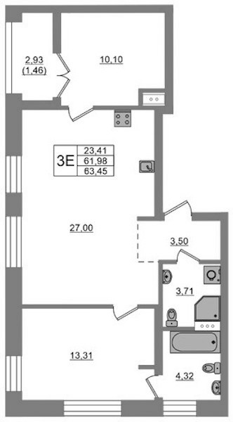 - Площадь63,45 м2