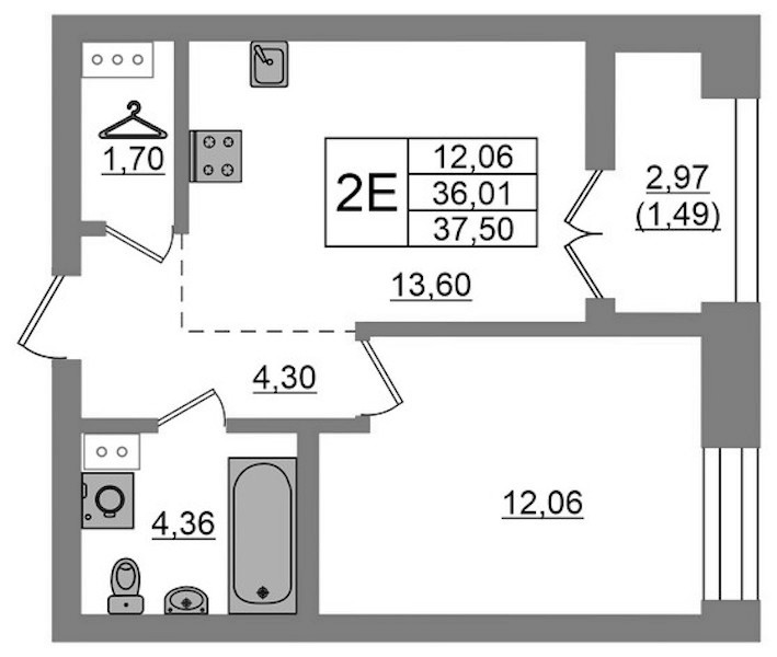 - Площадь37,5 м2