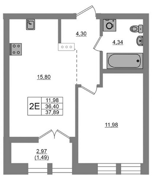 - Площадь37,89 м2