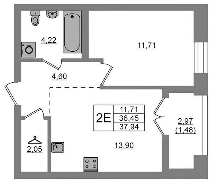 • Площадь37,94 м2