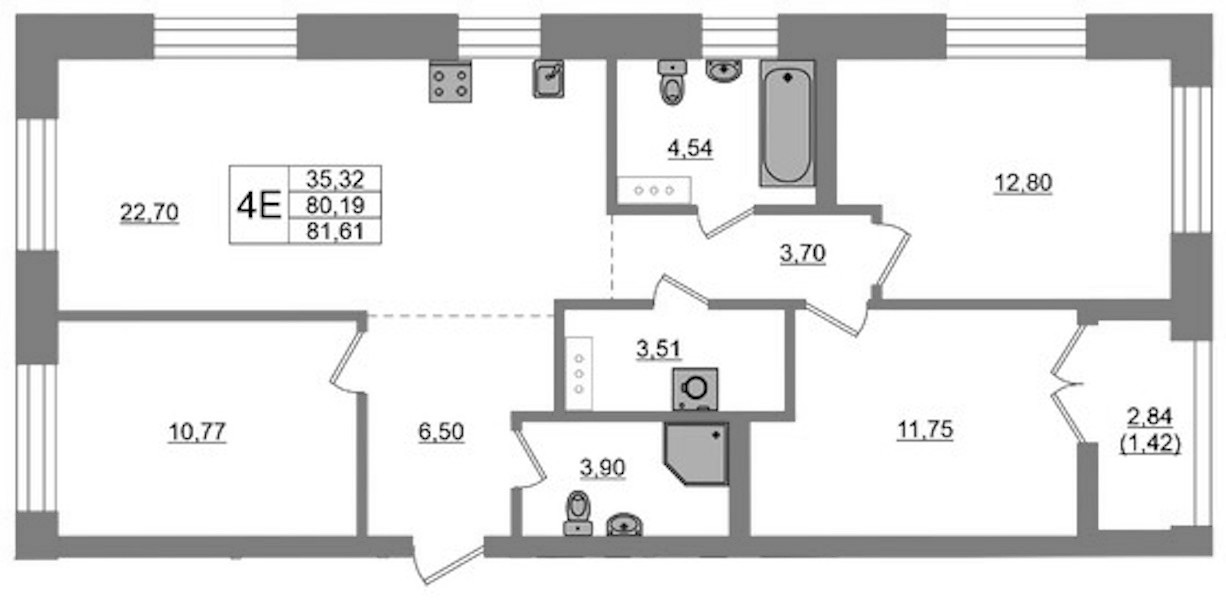 Трёхкомнатная квартира на 4-ом этаже 81,61 кв.м