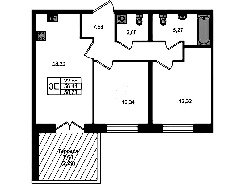 • Площадь58,73 м2