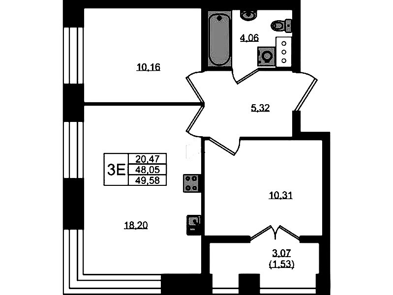 - Площадь49,58 м2