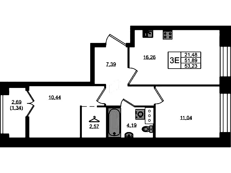 • Площадь53,23 м2