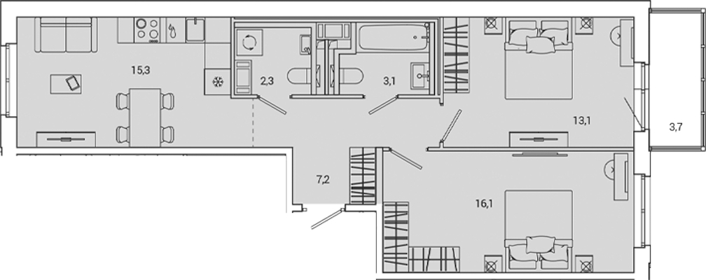- Площадь60,7 м2