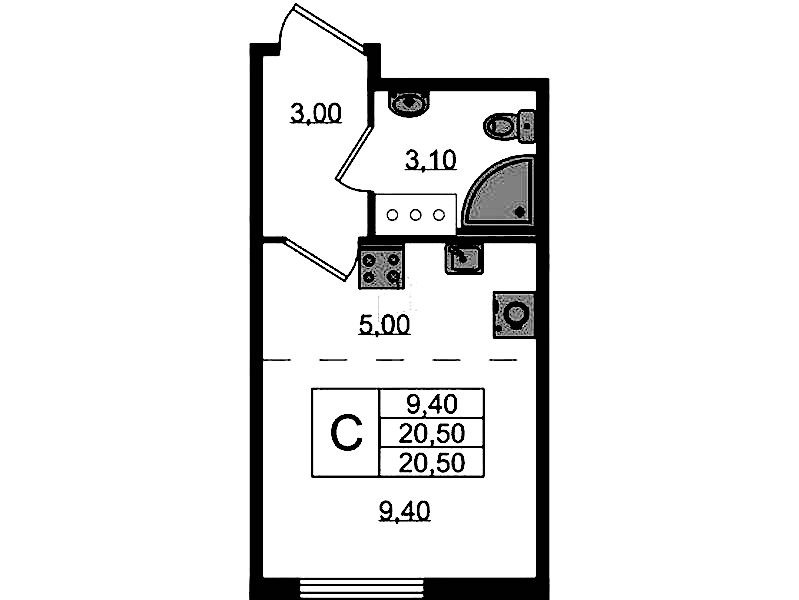 Квартира-студия на 25-ом этаже 20,5 кв.м