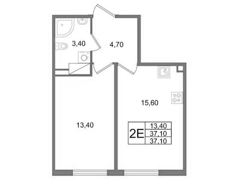 Однокомнатная квартира на 20-ом этаже 37,1 кв.м