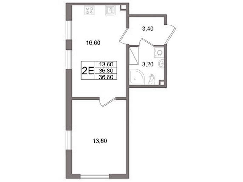 Однокомнатная квартира на 18-ом этаже 36,8 кв.м